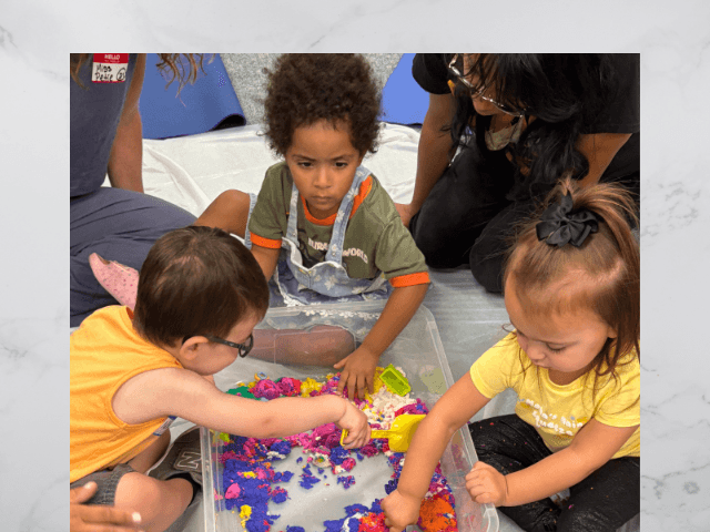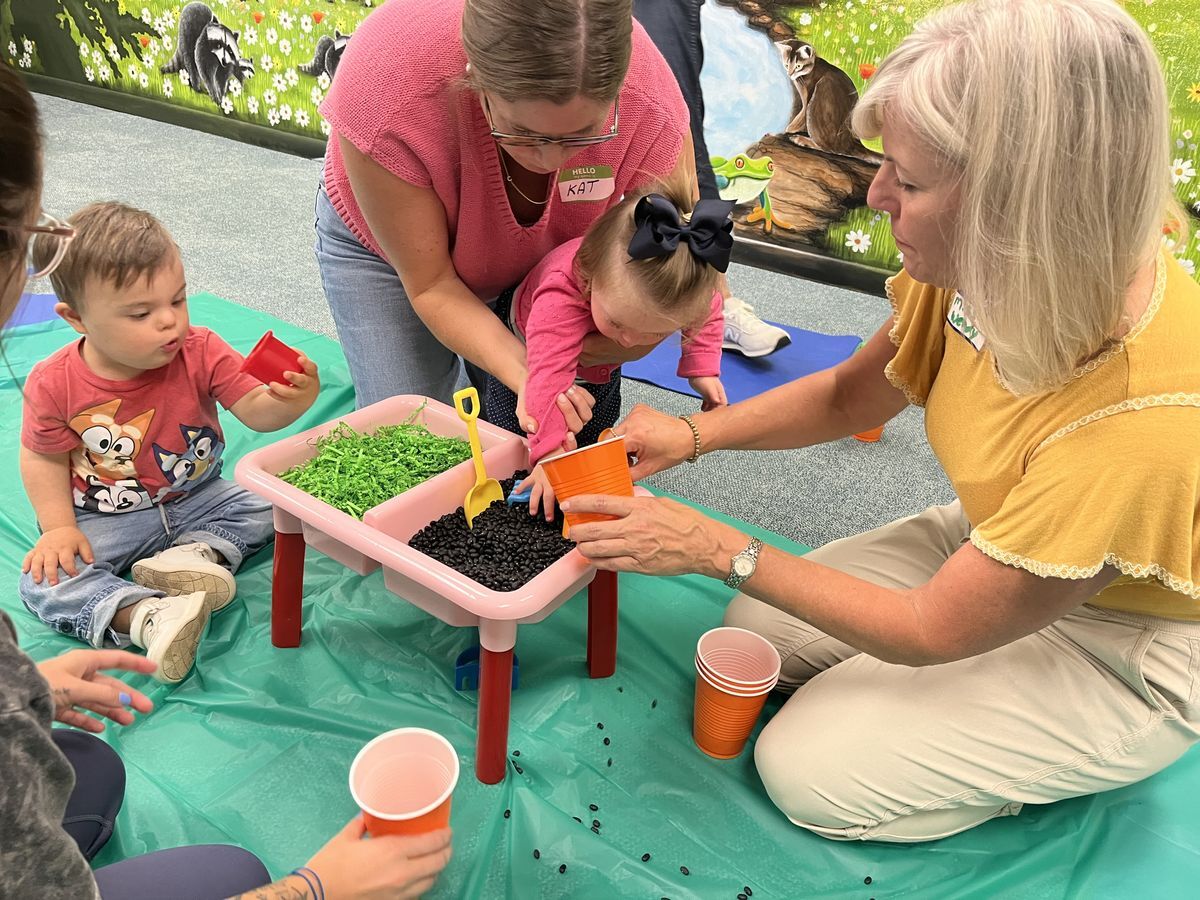 The sessions are staffed by 2 Early Intervention practitioners. Activities are designed for learning through sensory play, social interaction, crafts & songs. The moms group is led by a social worker as well.